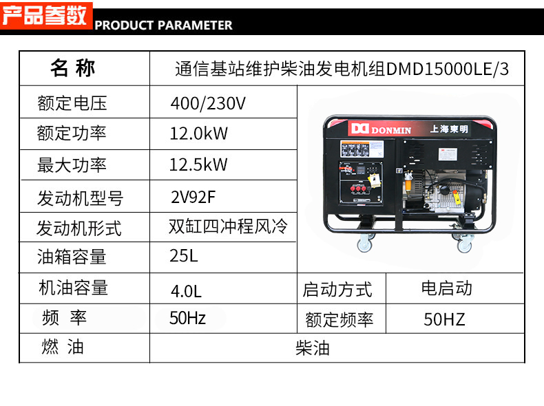 * 表示必填采購:12kW通(tōng)信基站維護柴油發電機DMD15000LE/3