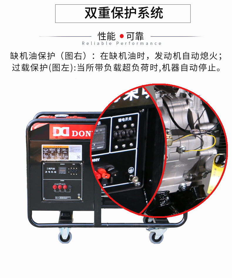本發電機適(shì)用於配備4個(50A)整流模塊通信基(jī)站維護(hù)使用。