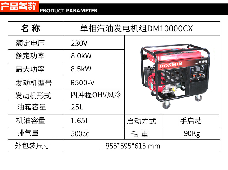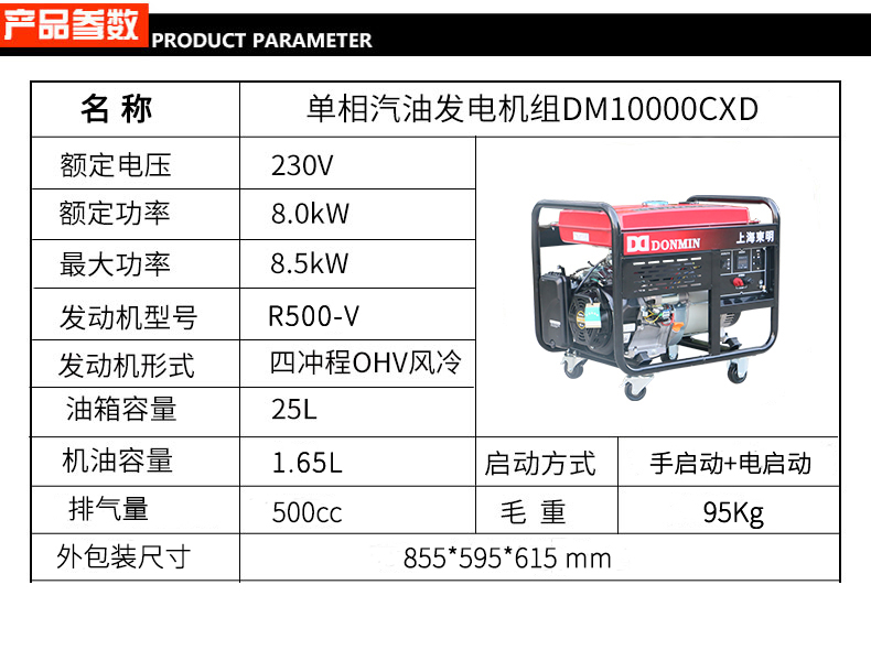 * 表示必填采購:單(dān)相8kw小型汽油發電機組 DM10000CX(D)
