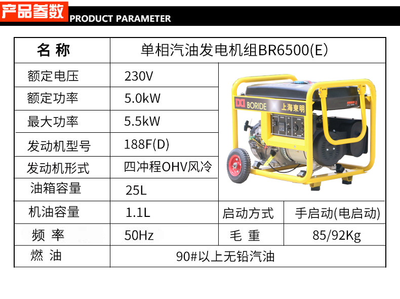 BR6500 路政(zhèng)工程5000W小型(xíng)汽油發電機組