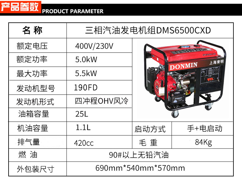* 表示必填采購:5KW三(sān)相用汽油發電機DMS6500CXD