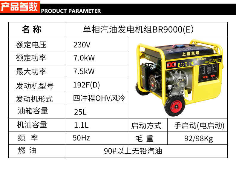 單相7kW小型汽油(yóu)發電機組 BR9000(E)