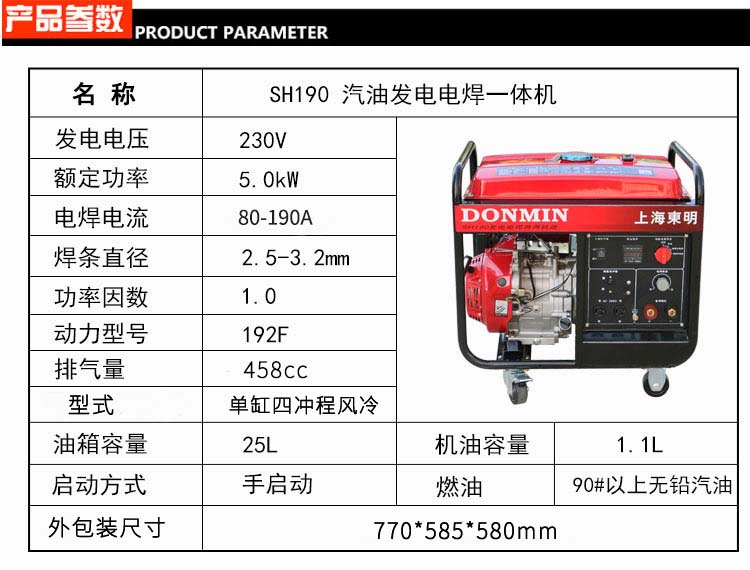 * 表(biǎo)示必填采購:80—190A單相(xiàng)手(shǒu)動 5KW汽油發電電焊一體機SH190