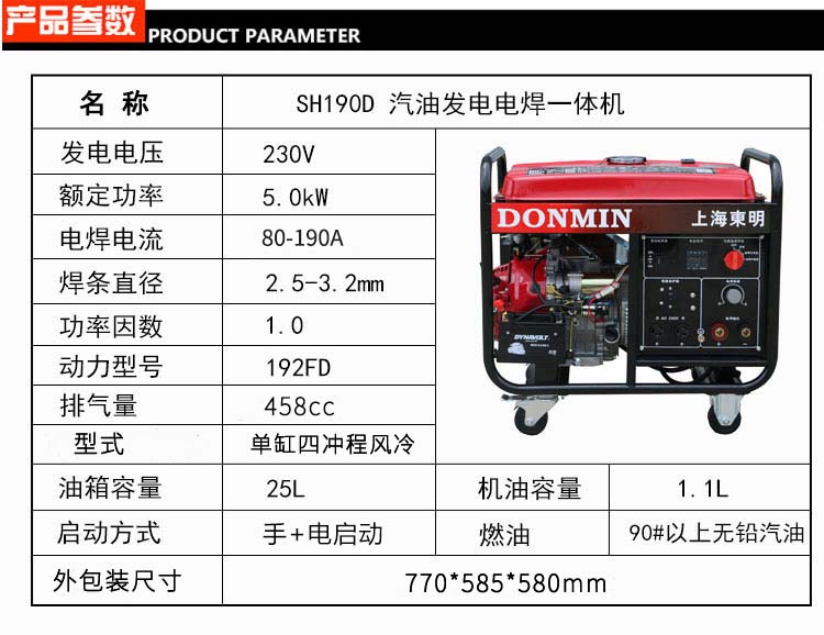 - 80-190A三相電動 5KW汽油發電電焊一體機SHS190D