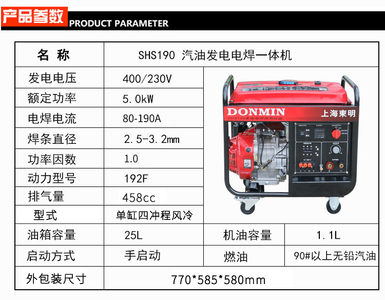 80-190A三相手動 5KW汽油發電(diàn)電焊一體機SHS190