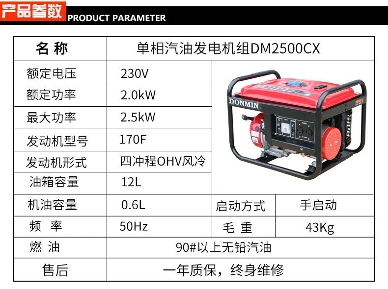 * 表示(shì)必填采購:單相2kW小型汽油發電機組DM2500CX