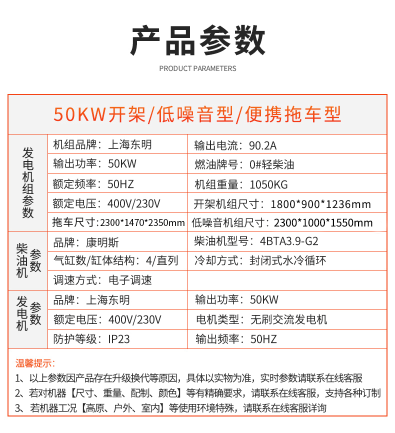 * 表示必填采購:DONMIN東(dōng)明 50kw拖車低噪音戶外施工康明(míng)斯柴油(yóu)發電機 GF2-50K(T)-1