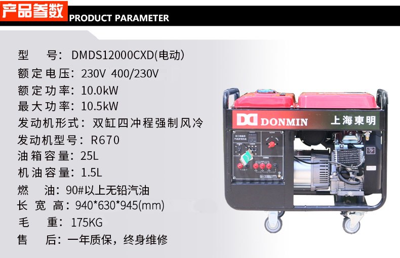 * 表示必填采購:單三(sān)相(xiàng)通用10kW小型汽油(yóu)發電機組 DMDS12000CXD