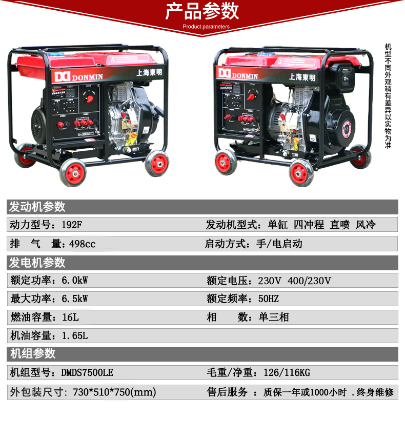 6千瓦 6000瓦單三相小(xiǎo)型柴油發電機組(zǔ) DMDS7500LE