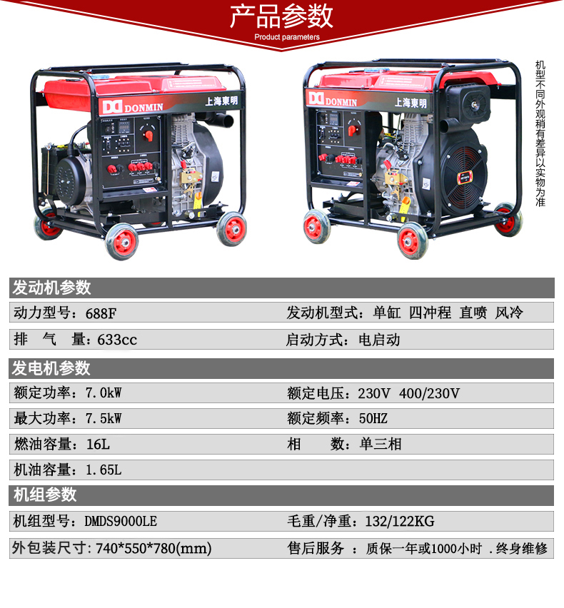 * 表示(shì)必填采購:單三相7kw柴油發電機 DMDS9000LE