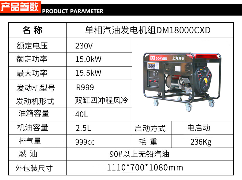 * 表示(shì)必填采購:單相15kw汽油發電機 DM18000CXD