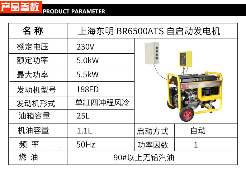 * 表示必填采購:單相5kW無人值守ATS小型汽油發電機組BR6500ATS