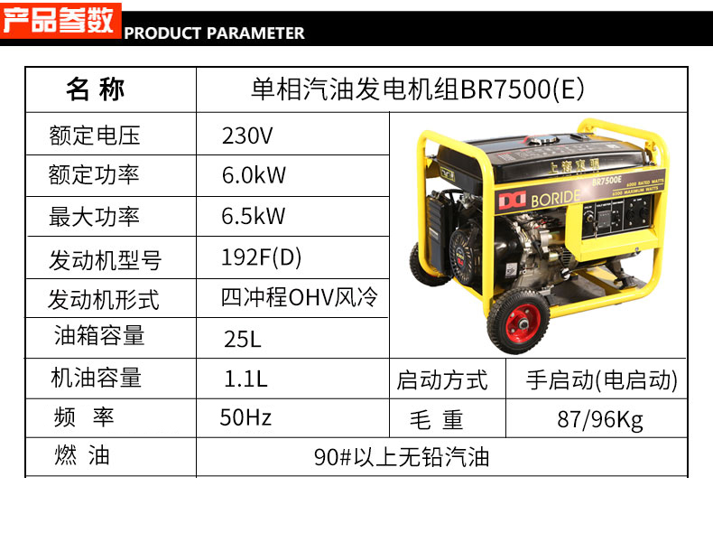 單(dān)缸汽(qì)油發電(diàn)機BR7500(E)