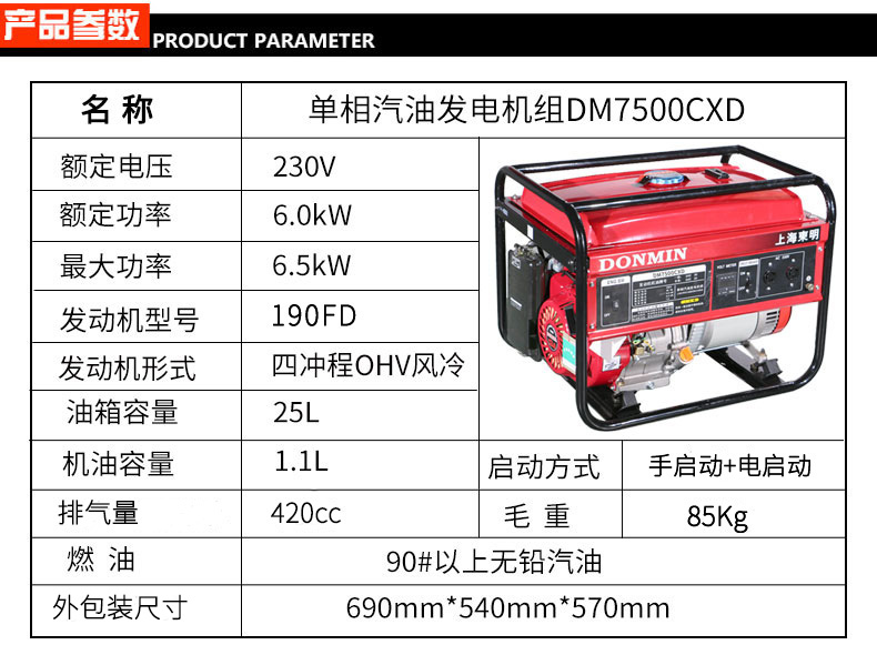 * 表示必填采購:單相6kW小型汽油(yóu)發(fā)電機組【可配備移動輪】DM7500CXD