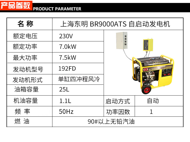 * 表示必填采(cǎi)購:單相7.5kW無人值守ATS小型汽油發電機組BR9000ATS