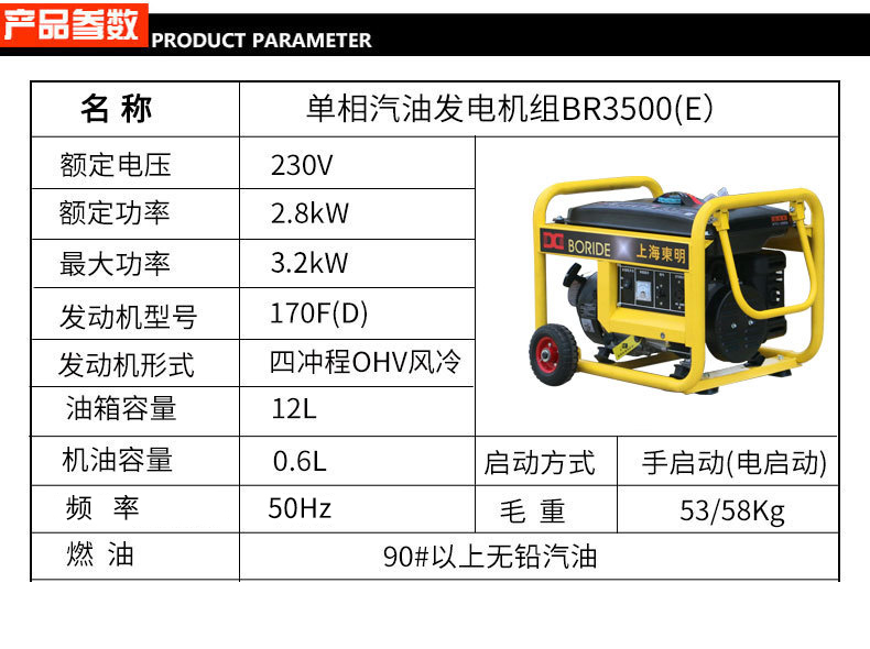 * 表示必填采購:單相3kW小型汽油發電機組(zǔ) BR3500(E)