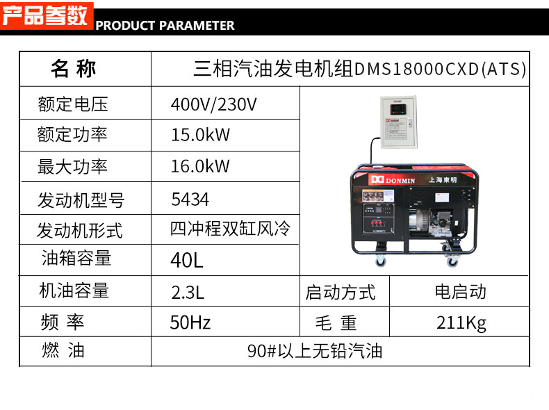 * 表示必填采購:冷鏈(liàn)配套(tào)三相15kw無人值守汽油發電機 DMS18000CXD(ATS)
