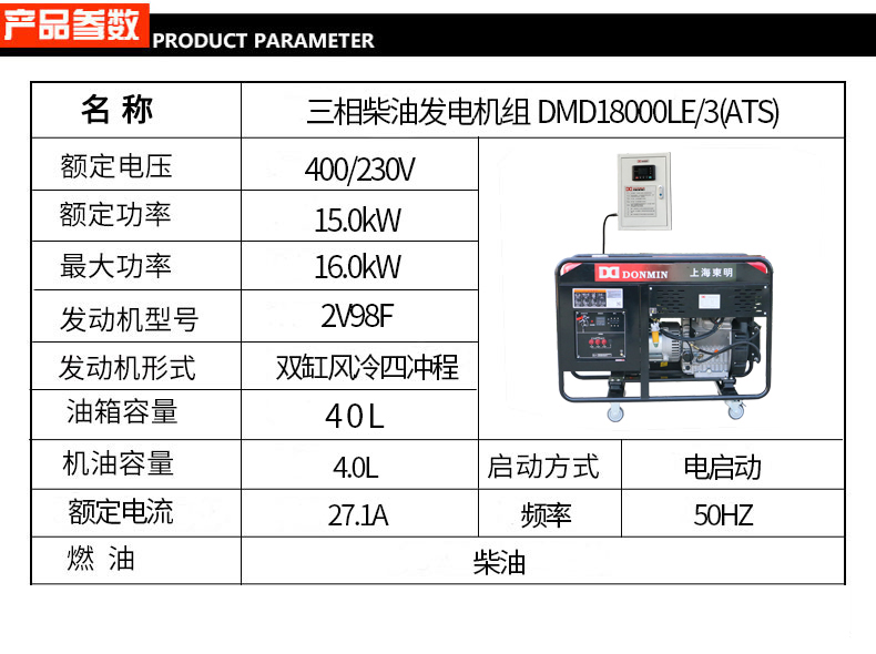 * 表示必填采購(gòu):冷鏈配(pèi)套三相15kw無人值守ATS柴油發(fā)電機 DMD18000LE/3(ATS)