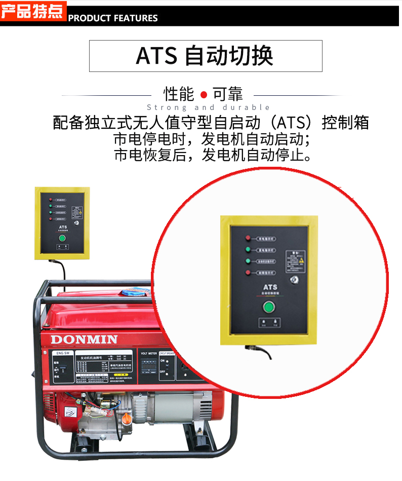 * 表示必填采購:冷鏈配(pèi)套單相5kw無人值守ATS汽油發電機組 DM6500CXD(ATS)