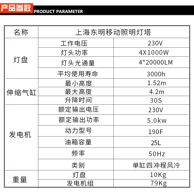 適用範圍:鐵路、電業、油田、冶金、石化企業等各種大型施工作業、事故搶修、搶險救災等現場作移動照明。