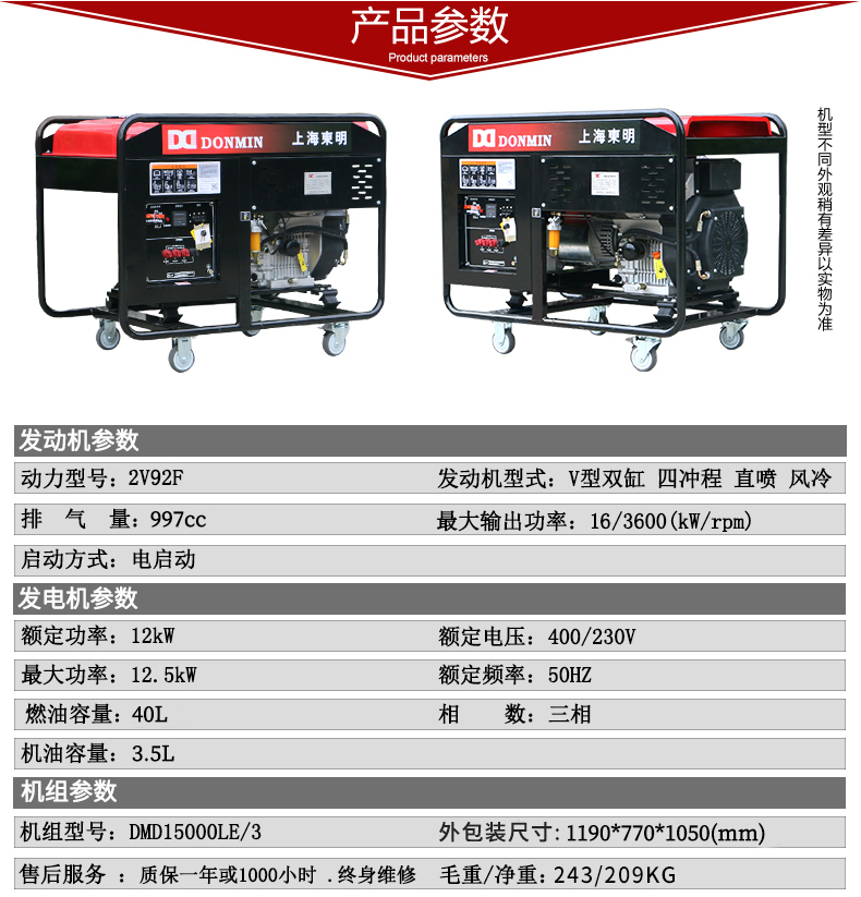 * 表示必填采購:三相12千瓦柴油發電機DMD15000LE/3