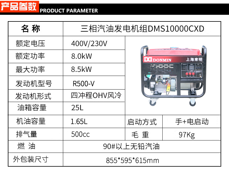 三相8KW汽油(yóu)發電(diàn)機 DMS10000CX/D