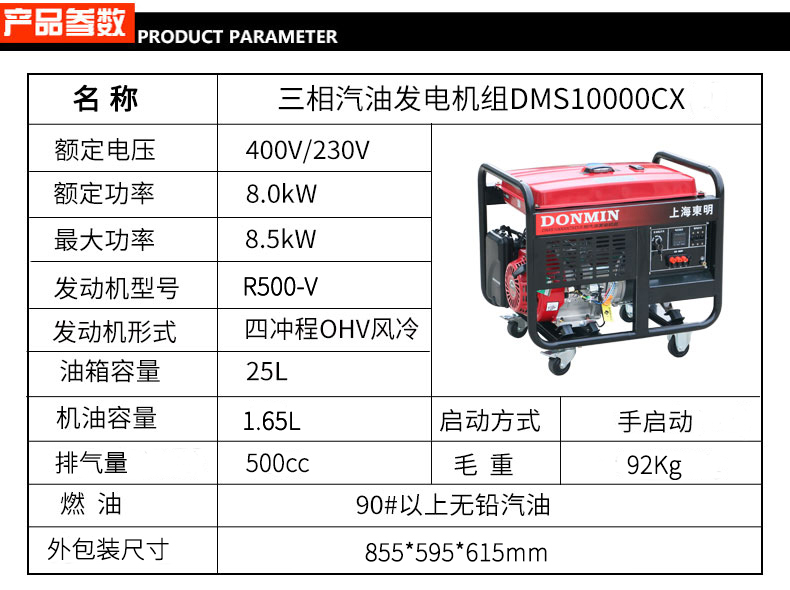 * 表示必填采購(gòu):三相8KW汽油發電機 DMS10000CX/D