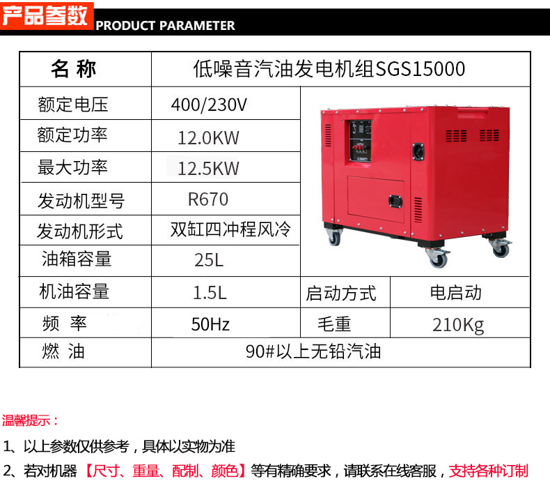 * 表示(shì)必填采購:三相12kW低噪音通信基(jī)站維(wéi)護(hù)用汽油(yóu)發電油機 SGS15000